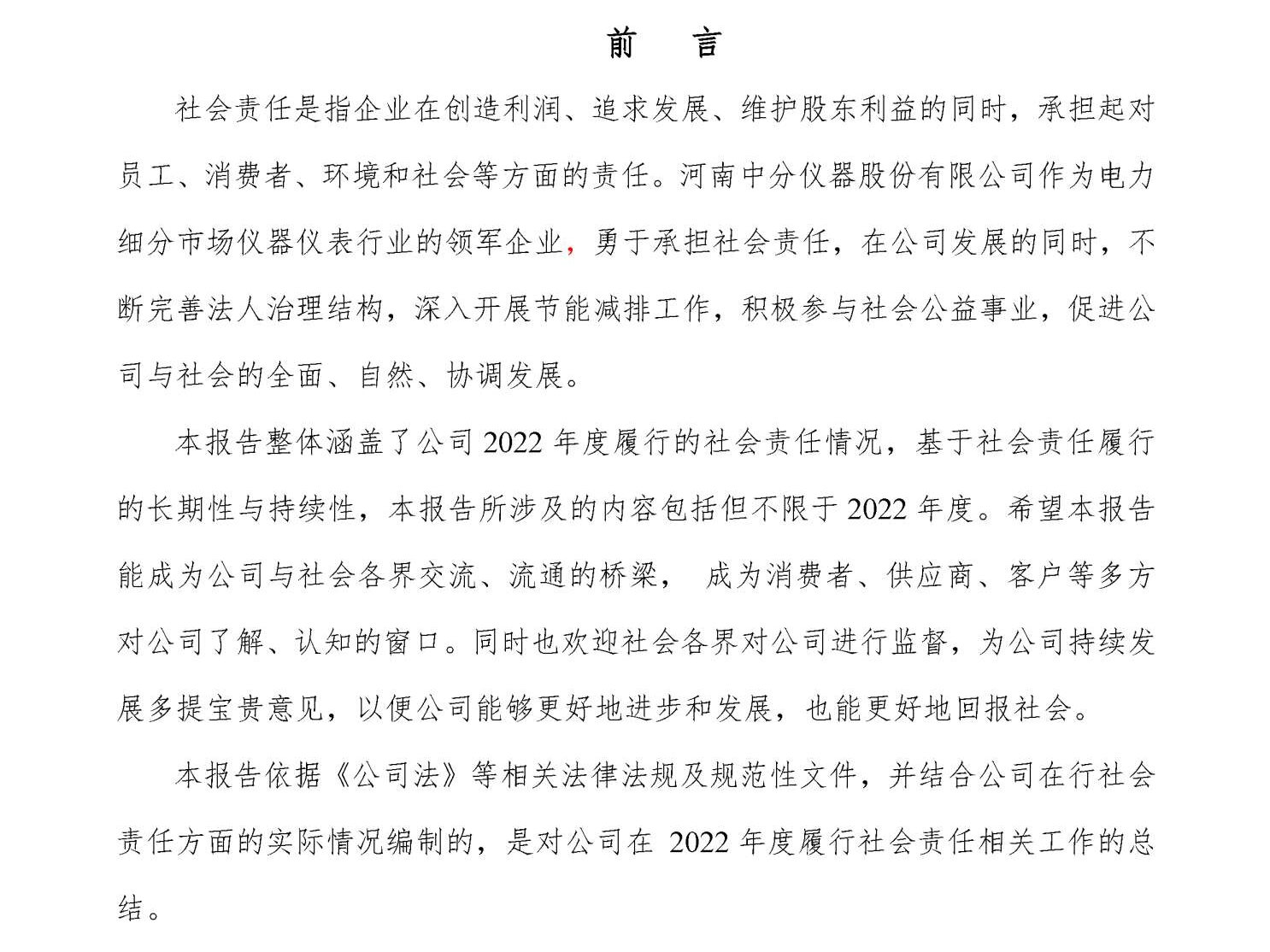 河南中分儀器股份有限公司2022年企業社會責任報告
