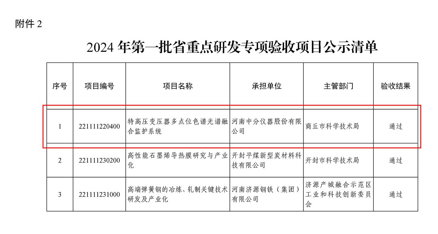 近期,我公司“特高壓變壓器多點(diǎn)位色譜光譜融合監(jiān)護(hù)系統(tǒng)”在2024年第一批河南省重點(diǎn)研發(fā)專項(xiàng)驗(yàn)收中成功通過。該系統(tǒng)應(yīng)用了先進(jìn)的色譜光譜融合技術(shù),可對(duì)特高壓變壓器進(jìn)行多角度、全方位的監(jiān)護(hù)。為特高壓電網(wǎng)的穩(wěn)定運(yùn)行提供了有力的支持。此次驗(yàn)收結(jié)果肯定了我們項(xiàng)目的技術(shù)質(zhì)量和科研團(tuán)隊(duì)的工作。我們將繼續(xù)優(yōu)化和完善項(xiàng)目成果,推動(dòng)其產(chǎn)業(yè)化和市場化進(jìn)程,為客戶和社會(huì)創(chuàng)造更多的價(jià)值。