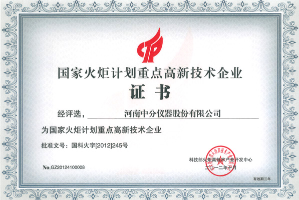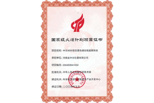 國家級項目計劃火炬證書